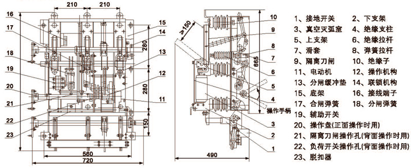 FZ(R)N16A-12高压真空负荷开关(熔断器组合电器)外形安装尺寸
