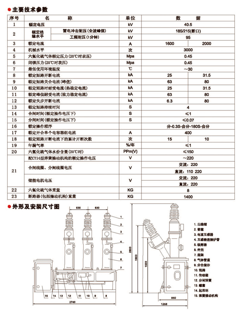 LW8-40.5高压六氟化硫断路器技术参数